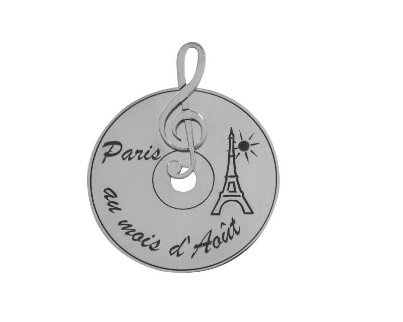Cette médaille est en forme de CD surmonté d'une clef de sol, le tout en argent 925 millièmes.